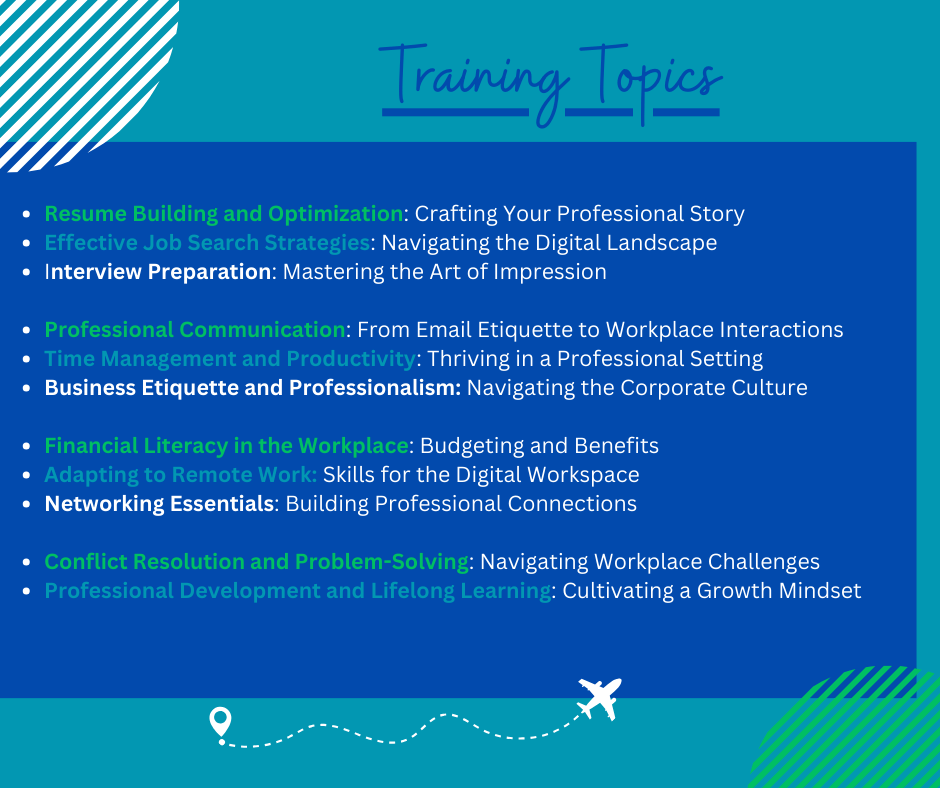 Job Readiness Training, strategically spread across three sessions, delivers a comprehensive and impactful learning experience that equips participants with the essential skills needed to excel in their professional journey. In the initial session, attendees delve into resume building and effective job search strategies, laying the foundation for a strong professional presence.